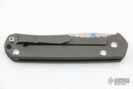 This Large Sebenza by Chris Reeve features a tumbled blade with single anodized thumbstud. The frame is bead blasted titanium with matching tip up clip. Nice detent, lockup and blade seating. Light scuffs are visible on the frame otherwise the knife is in excellent condition.