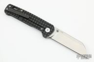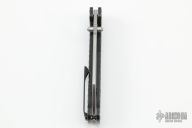 This QSP Penguin has a tumbled sheepsfoot blade with dual thumbstuds. The handle has milled titanium frame with a matching tip up pocket clip. Comes with original box, excellent condition.