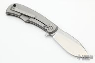 An evolution of the popular Nessie slip joint (the pattern of which was created by TJ Traylor), the Urban EDC Nessie frame-lock is brought to life in a special collaboration between custom knife makers Chris Taylor and Eric Luther. This knife features a drop point blade with tumbled grinds, satin finished flats and a notched thumbrest. The handle features a titanium frame with a matching tip up pocket clip and a micarta backspacer. Excellent Condition.