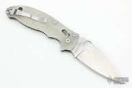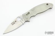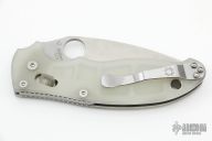 This axis-lock Manix 2 Moonglow from Spyderco features a satin finish, plain edged blade with SpyderHole and notched thumbrest. Contoured glow-in-the-dark MoonGlow scales. Three screw pocket clip is adjustable for ambidextrous left or right hand carry. Has scuffs and scratches, otherwise great condition.