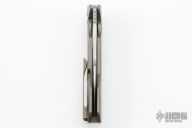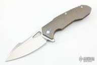 This OC1 by Occam Tactical features a satin finished blade with thumbhole and flipper. The handle has a bead blasted titanium frame, tip up titanium clip, stainless lockface insert, overtravel stop. Rides on bearings, nice detent, lockup and blade seating. Comes with zipper case. Has a couple light scuffs, otherwise excellent condition.