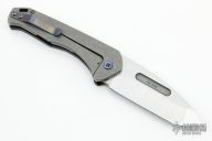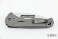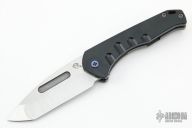 The Swift by Medford Knives features a tumbled drop point tanto blade with large fullers. The handle is composed of black aluminum and tumbled titanium frame complimented by an anodized tip up titanium pocket clip.  Includes original zippered case and box.  Excellent Condition.