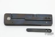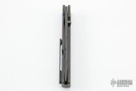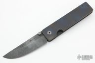 This Gent XL Framelock by Old Dominion Knifeworks features a "Boltwash" finished blade with a single thumbstud. The handle has a bead blasted titanium frame with a carbon fiber backspacer and a titanium tip up pocket clip.  Includes a spare zirconium pocket clip.  Rides on bearings.  Comes with a COA dated "March 2018". Has a few light scuffs, otherwise excellent condition.