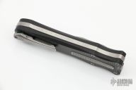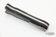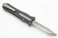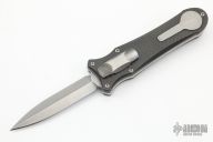 This knife is a Deadlock Model B. It has a double edged stonewashed blade. The handle has a carbon fiber and stonewashed titanium frame with a tip down spring clip, stonewashed titanium. The thumb slide on the handle is also titanium and handle has titanium overlays. Comes with a drawstring bag and card. Grant and Gavin Hawk set out to create a double action OTF with no blade play.... They did it, NO blade play. Excellent Condition.