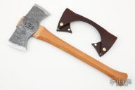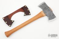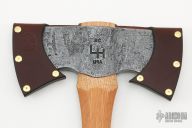 Our axes are hand forged from a block of 4142 chrome/moly alloy steel in the Blue Ridge mountains on the Western North Carolina, Eastern Tennessee line and heat treated to 55.5 HRC. The heads are hung on straight grained hickory handles made from cabinet grade kiln dried lumber. Each handle is hand fitted with a drawknife. The Saddle Axe head weighs 2.25lbs, and is hung on a 19 inch octagonal hickory handle. Octagonal handles naturally feel better in the hand, and provide better indexing. Double bit axes give you two blades in one. For example, it’s wise to save one of your blades for finer cutting work, while sacrificing the other for grub work near the ground where edge damage is likely. Double bit axes are very balanced as well. Sheaths are hand made with thick vegetable tanned water buffalo leather. 100% made in house. Overbuilt and ready to use, because overkill never fails.