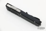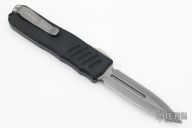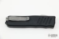 Add a state of the art OTF automatic to your rotation with the RECON-035 from Guardian Tactical. This RECON model is built with a stonewashed double edged blade and a black anodized handle. Guardian Tactical's patented OTF mechanism provides smooth, responsive opening action. The unique thumb slide design is separated from the aluminum handle by a steel plate and 3 ceramic balls that eliminate grinding and wear. An innovative locking mechanism sits off to the side of the blade channel so it doesn't drag against the blade when opening and closing. These features eliminate the friction on the blade and button that have always plagued OTF knives. Take your OTF game to the next level with the Guardian Tactical RECON-035. Features: Anodized aluminum handle is compact and lightweight for durable everyday carry. Innovative OTF mechanism offers fast and smooth opening action for responsive tactical deployment. Item includes a stainless steel pocket clip for secure tip-down carry. Comes with original box. #5062. Has some light scuffs and scratches on the frame, otherwise excellent condition.