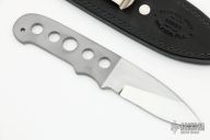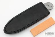 The Triathlete is a non-catalog knife. .163" blade stock and 1.065" blade depth, integral construction. Notched thumbrest. Bead blast handle. Comes with black leather sheath with belt clip and original paper wrapping. New from maker.