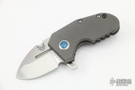 Shane Sibert’s original MPR has been reinvented in a new micro format. This monolock flipper, with its stout 0.124” thick, sub-2” blade, is capable of nearly any task. A melding of titanium, 20CV steel, and custom hardware, this knife brings big style and functionality to this Micro Pocket Rocket (mPR™). Designer: Shane Sibert Mechanism: Monolock flipper Action: Manual-opening Blade Length: 1.87” (4.75cm) Blade Thickness: 0.124” (3.150mm) Overall Length: 4.83” (12.27cm) Blade Steel: CPM-20CV premium stainless steel (59-61HRC) Handle Thickness: 0.45” (11.43mm) Weight: 3.52oz (99.7g) Original box and papers. Has some light scuffs and scratches on the handle. Great condition otherwise.