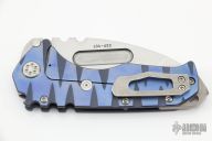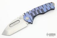 The Praetorian is a Marquee knife. It is a TON of blade in a relatively small package. This design incorporates aerospace materials, space age coatings, old school metallurgy, thoughtful design and hand craftsmanship that is rare but alive and strong in this modern world. This knife features a tumble finished drop point tanto blade. This particular knife features a sculpted and anodized finished titanium frame, slender titanium scales, all titanium hardware, and titanium clip. Comes with hard case and original box.Excellent condition.