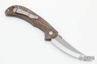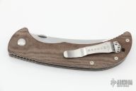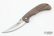The Emerson Persian-SF features an upswept stonewashed blade, brown canvas micarta scales over aerospace grade titanium liners. Notches on thumbrest, lock, and rear of handle. Include stainless steel tip up pocket clip. #1514. Comes with original box and papers. New condition.