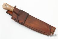 "These knives were formally known as the original "TRACKER" knives from the registered trademark, which I was the first to own & stamp on my blades during the '90's. After a brief retirement & the release of the 2003 Paramount Pictures film "The HUNTED" in which my Model "C" TRACKER knives were used & displayed, I resumed making my original TRACKER knife patterns but changed the name to avoid questionable trademark right disputes. In 2003 I was the first to coin the name "WSK" or Wilderness Survival Knife to this design. With over 22 years of refinement from personal service, feedback from customers & extensive field testing & use by top survival instructors & Elite military from around the world, my WSK knives have evolved into perfection & have repeatedly proven themselves in the field from real world survival to combat in many of our country's latest conflicts. Today you will see many variations by other makers but none can match the history, function & performance of my knives which are still the standard by which all others are judged. All the WSK knives I offer continue to be individually hand-crafted by myself from the contouring of the blades to the hand cut saw teeth to ensure the highest degree of craftsmanship & performance. Each blade is crafted from high carbon tool steel & skillfully deferentially hardened & tempered for superior edge holding & blade resilience. Handle grips are permanently fastened by stainless steel Loveless bolts with solid brass nuts, lined lanyard hole and guaranteed never to loosen under the hardest use. My sheaths are personally crafted for a custom fit from heavy leather that's been double stitched & finished for long wear. My field-grade knives retain all the same quality construction, differential heat treatment & performance as my high grade collectible knives but come with less costly cosmetic refinements for more practical field use."