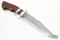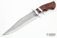 This Sub-Hilt Fighter by Samuel Lurquin features a San Mai Damascus recurve blade with sharpened top edge, .259" blade stock and 1.744" blade depth, hidden tang construction. The handle has a stainless steel guard and sub-hilt with a curly Koa wood grip. Beautiful handle contouring. Comes with a zippered case. Excellent condition.