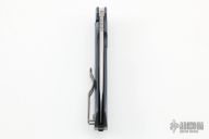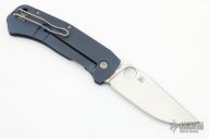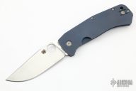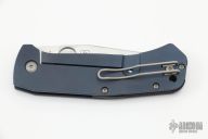This Slysz Bowie by Spyderco features a tumble finished blade with notched thumbrest and thumbhole. The handle has a blue anodized titanium frame with notched black G-10 backspacer and tip up, left or right reversible clip. Nice detent, lockup and blade seating. Includes the original box and papers. Excellent Condition. Knifejoy Edition