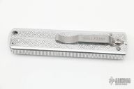 This Triple Action by Cold Steel features a double edged blade with single thumbstud. The handle has an aluminum frame that houses the blade. Has a tip down pocket clip. Has some scratches, otherwise excellent condition.