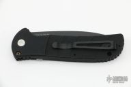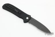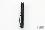 This Entourage auto by Heckler and Koch features a black partially serrated blade. The handle has a black aluminum frame with tip up black stainless steel clip. Has safety. Comes with original drawstring bag. Excellent condition.