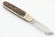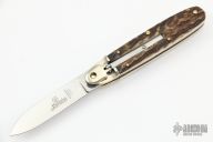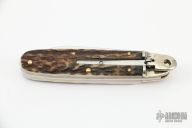 This leverlock auto by Hubertus features a drop point blade, nickel silver double bolsters, stag scales, and brass liners and pins. Opens with a nice snap. Very fast opening. Has some light scuffs and scratches, but otherwise in excellent condition.