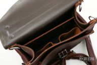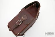 This Front Pocket Leather Backpack has a floppy interior laptop back pocket and all three exterior pockets have a hidden pocket behind them for quick access and for longer things. The lower d-rings on the bottom of the backpack are great for strapping on tripods, blankets and wet river shoes. The shoulder straps are minimal, comfortable and adjustable. In fact, you can remove the shoulder pads for whatever reason. Like if you are tying down something with a nice finish on the roof rack of your Land Cruiser and you don't want the rope to leave a mark. You can put this shoulder pad under the rope. I know there aren't many ways to innovate for functionality on a plain leather backpack, but when I found a chance, I took it.