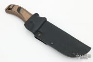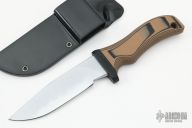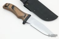 This Pygmy ATAK by MadDog Knives features blade with .251" stock and 1.230" blade depth, hidden tang construction. Selectively tempered, the ATAK has a Rockwell C-scale hardness of 62 at the edge (as hard as a file), and HRC 50-54 throughout the spine and hidden full tang. Hard chrome blade finish. The black and tan G-10 handle is designed to be ergonomic and has the ability to withstand tremendous punishment with little or no damage. It is hard and tough enough to be used as an impact tool. Includes a kydex sheath with belt loop and a zippered case. Excellent condition.