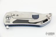 This Dominator V6 by Darrel Ralph features a satin finished blade with swedge, notched thumbrest and flipper. The handle has a satin finished titanium frame with anodized edges and carbon fiber inlays, titanium tip up clip and backspacer. Includes original zippered case and COA dated 05/21. Has a tiny bit of lock rock, otherwise excellent condition.