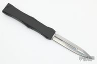 This Nemesis III by Microtech Knives features a Walter Brend hand-ground hand rub satin finished double edged blade with fullers. The handle has a black aluminum frame with safety and charging handle. Dated 02/2000. Marked "W. Brend" on charging handle. Number 1409. Has some light scuffs, otherwise excellent condition. Comes with original box and papers. Has a couple light scuffs on the rear of the frame, otherwise excellent condition.