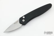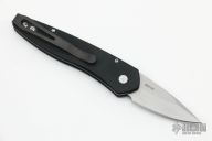 This Half Breed by Pro-Tech has a stonewashed blade with swedge. The handle has a black aluminum frame with a black stainless steel pocket clip. Includes original box and papers. New from maker!