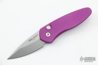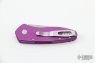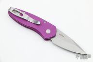 This Sprint by Pro-Tech has a stonewashed blade and a purple aluminum handle. Stainless steel clip. Comes with original box and papers. New from maker.
