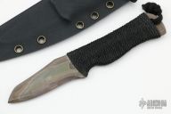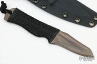 This Titanium Fixed Blade by John Gray features a heat treat finished titanium blade with .074" blade stock and 1.065" blade depth, full tang construction with black cord wrap. Comes with a black kydex sheath. Completely nonmagnetic. Excellent condition.