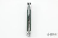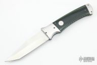 This Kumite D/A Linerlock Auto has a hand rub satin finished tanto blade with false top edge and dual thumb studs. The handle has satin finished titanium bolsters, G10 scales, titanium liners and stainless steel back spacer.  Blade is well centered, solid lockup, and fires great. New from maker!