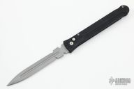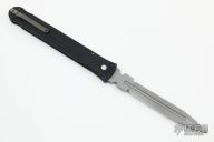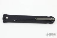 This Assassin by Rob Dalton features a double edged bead blast finished blade and a black anodized aluminum frame. Bead blast titanium clip, tip up carry. Powerful coil spring action. Some carry marks on clip but otherwise good condition.