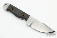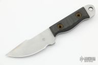 This Thick Shawty by Jeremy Horton features a tumbled chisel ground blade, .198" blade stock and 1.217" blade depth, full tang construction. The handle has carbon fiber scales. Excellent condition.