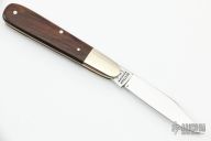 This slipjoint from Hen & Rooster features a polished clip point blade with nail nick. The handle has nickel silver bolsters and wood covers over nickel silver liners. Bullet shaped nickel silver escutcheon. Great blade seating, includes original box.  Excellent Condition.