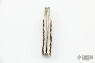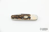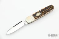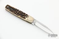 This CM-6 from Hen & Rooster features a mirror polished drop point blade with nail nick. The handle has brass bolsters/liners and stag covers. Includes original box. Excellent Condition.