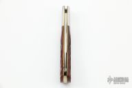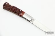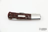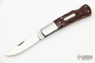 This Lockback features a mirror polished blade with nail nick. The handle has stainless steel bolsters and escutcheon, jigged bone scales, brass liners and a stainless steel spring. Includes original box. Excellent Condition.