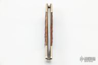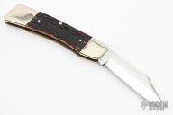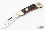 This knife features a mirror polished clip point blade with a single nail nick. The handle features nickel silver bolsters, brass liners and jigged bone scales. Includes original box. Excellent Condition.