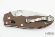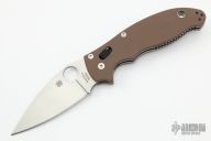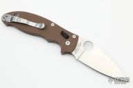 This Spyderco Manix 2 has a satin finished blade, thumbhole and notched thumbrest. The handle is comprised of brown G-10 scales over steel liners and backspacer. Lanyard tube in pommel. Includes original box and papers. Stainless steel reversible tip up clip. Excellent condition. Comes with original box and papers.