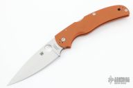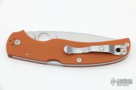 This Native Chief takes the time-tested design of the original and stretches it out to create a longer and slimmer profile with even more cutting performance. Burnt Orange G-10 scales and a full-flat ground Rex 45 steel blade solidify the design. Textured G-10 handle scales are backed up by a precision-machined lockback mechanism. 4-position pocket clip allows for fully ambidextrous tip-up or tip-down carry. Excellent condition. Comes with original box and papers.
