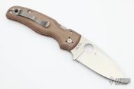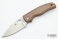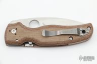 This Shaman Pin by Spyderco features a satin finished spear point blade with notched thumb and finger rests, thumbhole. The handle has natural canvas micarta scales, inlaid stainless steel liners and a satin finished stainless steel backspacer, 4-way reversible stainless steel clip, lanyard hole at the butt. Excellent condition. Comes with original box and papers.