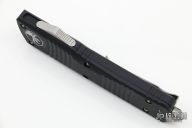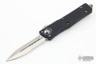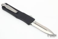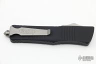 This Combat Troodon OTF automatic by Microtech knives features a satin finished double edged blade with partial serrations, and a black aluminum handle with bead blasted hardware, tip down carry. Glass breaker. S/N 13687. Dated 02/2015. Comes with original box and papers. Has a couple light scuffs, otherwise excellent condition.