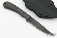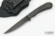 This knife is a collaboration between Daniel Winkler and Kevin Holland, US Navy SEAL (ret.) and US Army Special Operations (ret.). Kevin’s expertise as a military operator, as well as a skilled trapper/outdoorsman, resulted in a knife that is not only effective in tactical environments, but provided utility when required. Knife Specifications Blade steel: 80CrV2 Black oxide no-glare finish Blade length: 4 1/8" Overall length: 9" Blade thickness: 5/32" Full tapered tang Thumb index file work Sheath Lined Kydex® with leather cover Designed for multiple carry options. Excellent condition.
