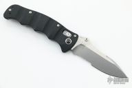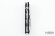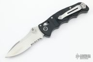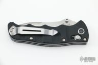 This 484S Nakamura AXIS features a drop point blade with serrations, swedge, dual thumb studs and notched thumb rest. The handle is comprised of machined black G10 scales over steel liners and barrel spacers. The steel tip up clip is reversible for right or left hand carry. Comes with original box. Excellent condition.