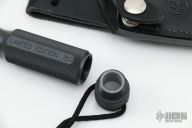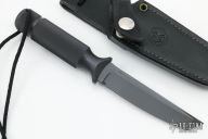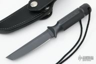 This Tanto III from Chris Reeve features a black coated tanto style blade with .186" bladestock and .84" blade depth. The handle is comprised of integrally constructed A2 steel with a hollow handle and removable aluminum pommel. Comes with a CRK black leather sheath. Excellent condition.