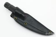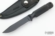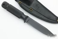 This Mountaineer I by Chris Reeve features a clip point blade with swedge and notched thumbrest, .180" blade stock and 0.857" blade depth. The handle is comprised of one-piece hollow construction with threaded/removable butt cap. Lanyard and lanyard hole in pommel. Includes leather sheath with belt loop. Excellent condition.