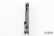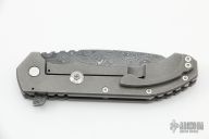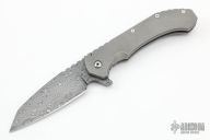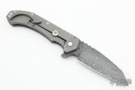 This Custom Hoplite by Aegis Knife Works features a Damascus blade with notched thumbrest and flipper. The handle has a stonewashed titanium frame with matching tip up clip and polished titanium barrel spacers. Nice detent, lockup and blade seating. Comes with a CKF knife case. Excellent condition.