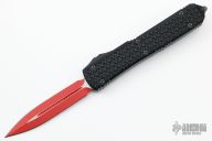 This Ultratech OTF automatic by Microtech features a D/E red blade. Black aluminum contoured frame with black tip down stainless steel clip. Dated 07/2021 and s/n 5367. Excellent condition. Includes original box and papers.