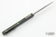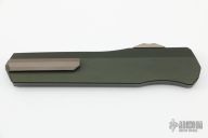 This Cypher OTF is a collaboration between Anthony Marfione and DC Monroe. It features a katana blade with fullers. The handle has an OD Green anodized aluminum handle with bronzed hardware and titanium tip down clip, and a blasted titanium insert at the butt. Comes with original box and papers. Excellent condition. 05/2018 and #164.