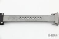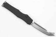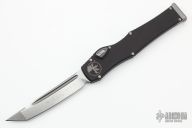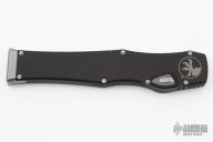 This Halo VI by Microtech knives features a stonewashed tanto blade with fullers. The handle has a black aluminum frame with blasted stainless steel hardware and charging handle. Dated 05/2018 and S/N 896. Comes with original box and papers. Excellent Condition.