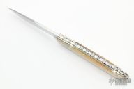 "I've been building knives full time since 1981. I started out making my first knife on the kitchen table with a vise and some files in 1978 at the age of 15. Ever since then it's been a passion and a journey to build a better knife than the last. I primarily make pocket knives with a lockback or front lock mechanism. I have made many other types of knives and am always willing to try something new. I'm most widely known for carving seashell patterns in the bolsters and handle material called scalloping. This type of carving has become a trademark of my work and makes my knives easily recognizable to collectors who have heard of me. I won 11 Blade show awards in 7 consecutive years from 2002 to 2008 including 2 best folder awards, one best folder of the year, 3 best handle designs. I ended competing at the Blade show in 2008 with wining best fixed blade which won best of show. I have also won best folder at the Plaza Invitational and the Chicago show."