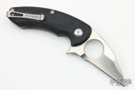 "Jason Brous began his efforts in knifemaking with the benefit of nearly 10 years of experience in CNC machining. His father owns a shop that specializes in the custom machining of high-precision components, mainly for the medical industry. Jason spent a lot of time in his father’s shop while growing up, and by his mid teens was actively helping out with production. His skills and knowledge steadily increased and by the time he was 20 he was a seasoned and very competent machinist. Jason's interest in knives actually began with art - specifically a style called “Bio-mechanical” - as practiced by one of his favorite artists, a Brazilian painter and tattooist named Lango. Biomechanical art (also called Biomech) is a surrealistic style of art that combines elements of machines and robotics with organic animal features. Intrigued by this style of art and its similarity to many fantasy knives, Jason figured that knifemaking would be a natural extension of his metalworking skills and an appropriate medium for his artistic ideas. Although he had no specific training in knifemaking, in 2010 he designed and made his first knife - a fantasy design with a Biomech flavor. Through persistent trial and error, Jason changed his style of knife design to focus on functional simplicity, while still maintaining a strong artistic signature. His early successes came in the form of a series of stout neck knives with dual finger-hole grips. Fans of these “Silent Soldier” neck knives began asking for other expressions of the design. Since then, Jason has created numerous variations including a clip point version, a tanto version and the very popular folder version called the Silent Soldier Flipper."