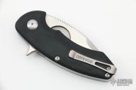 "The Silent Soldier Flipper features a satin finished steel blade with a Wharncliffe style profile. The blade has a double ground, double swedge. The spine has aggressive thumb jimping and a 7/8" finger hole in the blade for ultimate control with various grip styles. The pivot utilizes a ball bearing system and heat treated pivot and stop pin. The handle has 6al4v titanium liners, G10 scales. Bead blast finished stainless steel back spacer and pocket clip" Flipper opening mechanism. Comes with original box and papers. Excellent condition. 676 of 1000
