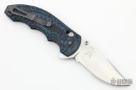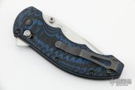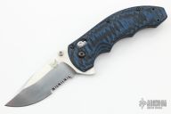 This Ball Axis lock flipper by Benchmade Knives features a stonewashed clip point blade with notched thumbrest and flipper with serrations and dual thumbstuds. The handle has black/blue G-10 scales with black stainless steel liners and tip up reversible clip. Excellent condition.
